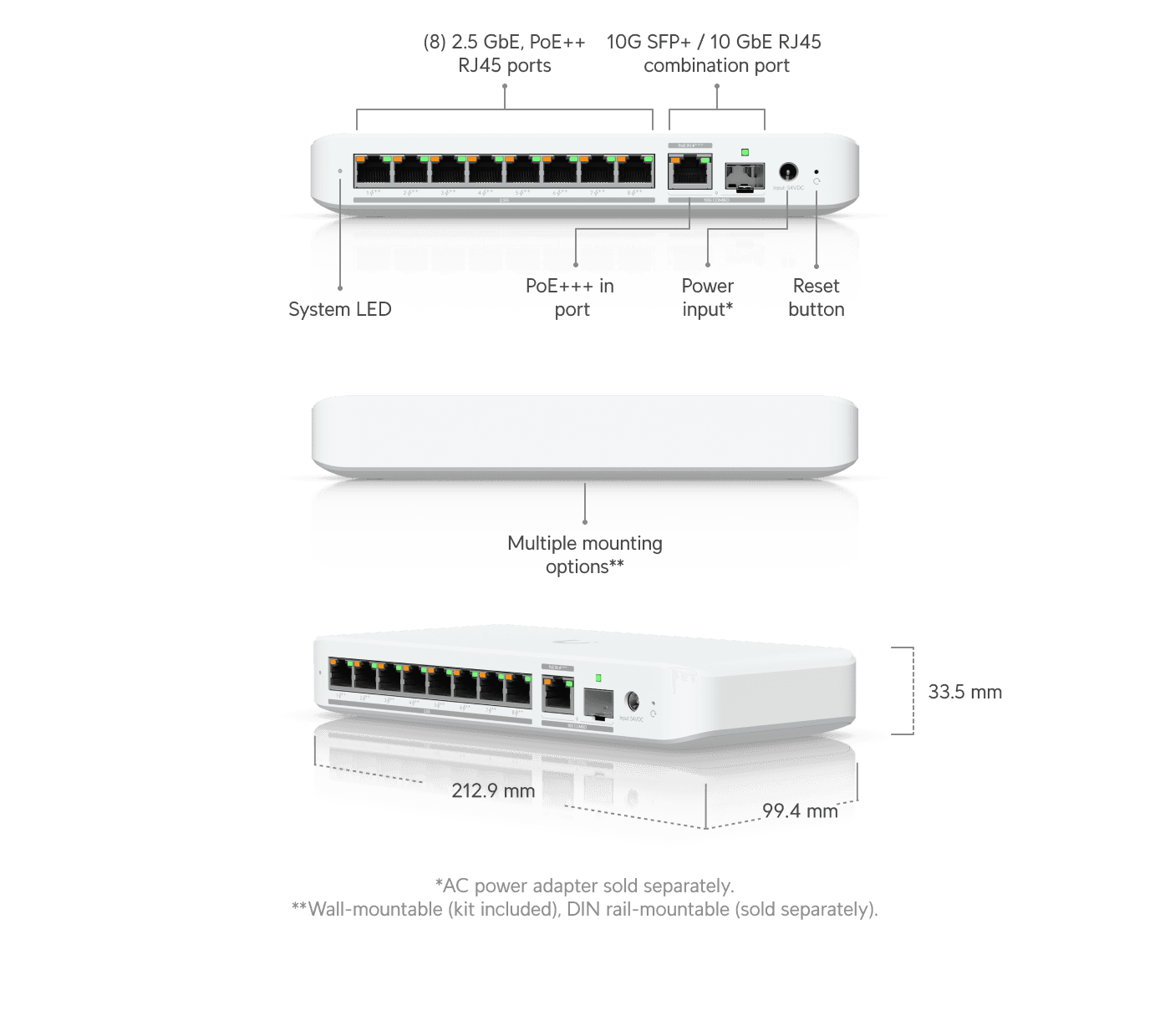 - (1) 10 GbE PoE+++ input port for power / SFP+ port combo